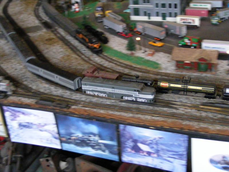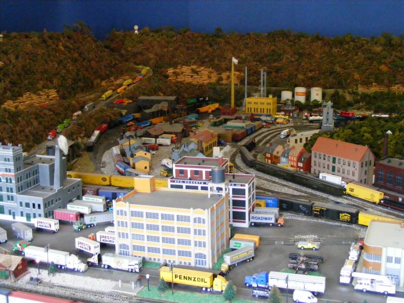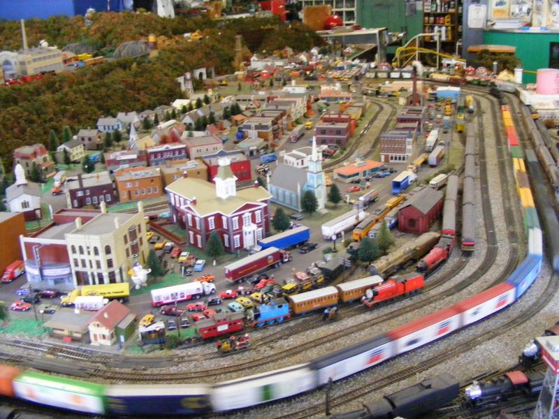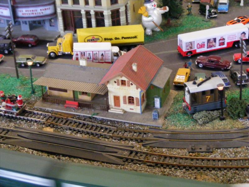 Impressive build there! Amazing how much stuff is crammed into that spot, the town is really there, not just a one-light town. Modeling is for everyone, who sez you need to have knuckle couplers on your trains, or totally scale autos? Use what you got if it's cheaper, and enjoy it! Seems like he does. Heck, Lionel guys aren't all that realistic, as their layouts are more fun than scale anyway. Tube track will NEVER be mistaken for prototype anywhere!