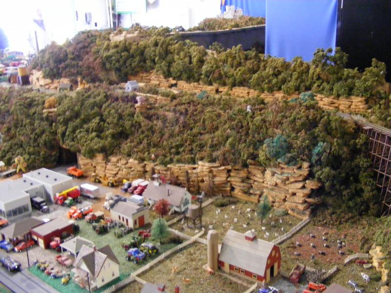 And finally along the backside things get a little more rural. He had some nice things back here like a trestle or two. I really liked the rock formations & the tree'd hillsides that loomed over the buildings below.