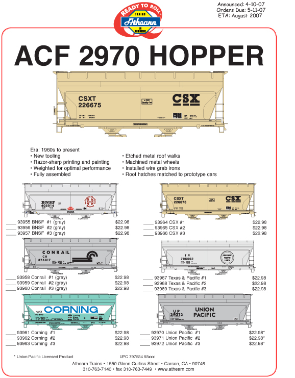 New Run- Athearn RTR 2970 Covered Hoppers...