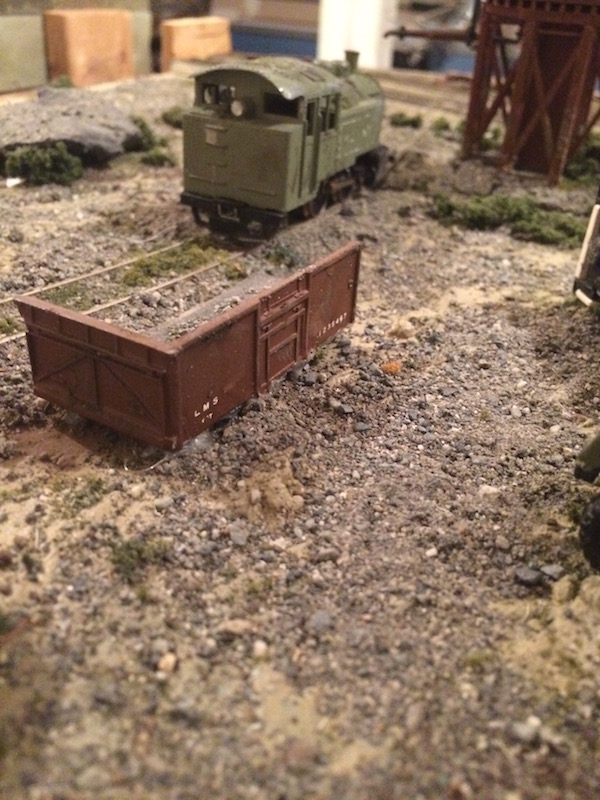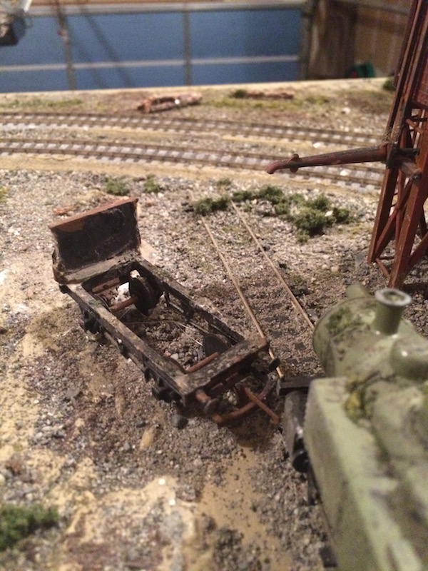 My AOTW for this week is a British coal car wreck thing on my old west H0 layout.