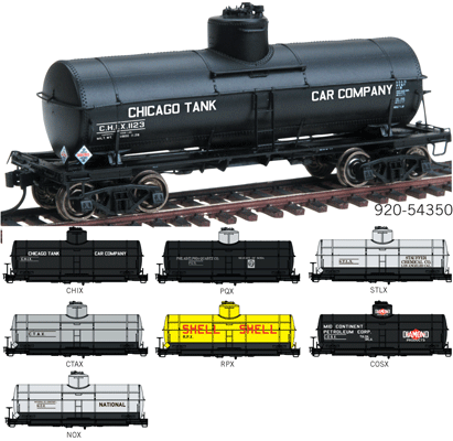 * Authentic Steam-Era Schemes * Detailed Underframe with K Brake * 2 Different Numbers for Each Scheme * Scale Size Handrails & Grab Irons * Correct Weight for Optimum Operation * Correct Trucks * Metal RP-25 Wheels * Magnetic Knuckle Couplers Demand for tank cars skyrocketed in the 1920s as automobiles and trucks became more common. Moving gasoline, lubricants and other petroleum products over long distances required larger and stronger tank cars. In 1921, American Car & Foundry rolled out the first of its new 10,000-gallon, riveted steel cars, which came to be known as the Type 21. Shortly after the US entered World War II, German U-boat attacks on coastal shipping threatened supplies of home heating oil and gasoline to the eastern states. To counter the threat, type 21s were put to work as rolling pipelines, moving badly needed petroleum products cross-country by rail. Tough and durable, the cars kept rolling into the 1960s, often hauling many other kinds of liquids. This series of models are based on steam-era cars and feature the original K-type brake system and early lettering schemes. Additional roadnumbers for each scheme are available in Time-Saver(R) Kit versions (920-54364 series) sold separately.