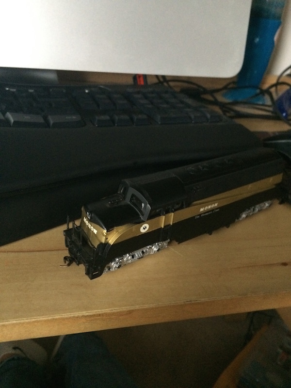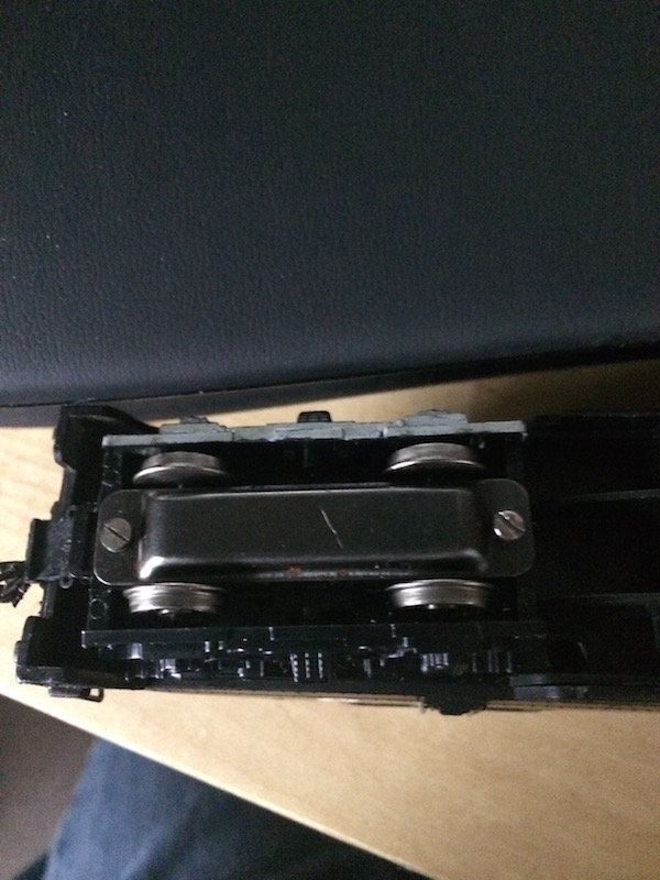 Should have gotten the photo a little clearer but you can tell it is a EMD Bloomberg truck the type used on the BL2 and the early F units. frank