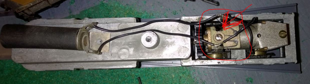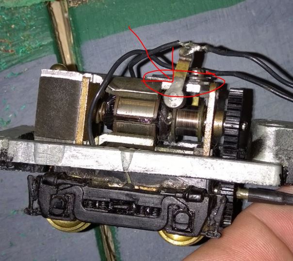 | The more I think about it the more I am leaning twords cutting a new board. I am not even sure how the motor is attached currently. The lower truck is mounted to it through a hole in the frame, this I can see from the side. Unfortunately without dismantling the truck I cannot tell if it is a rivet or screw that is used. The motor comm is near perfect. I placed a wire from the track to the com and it came to life. The brushes are mostly still flat, very little wear.