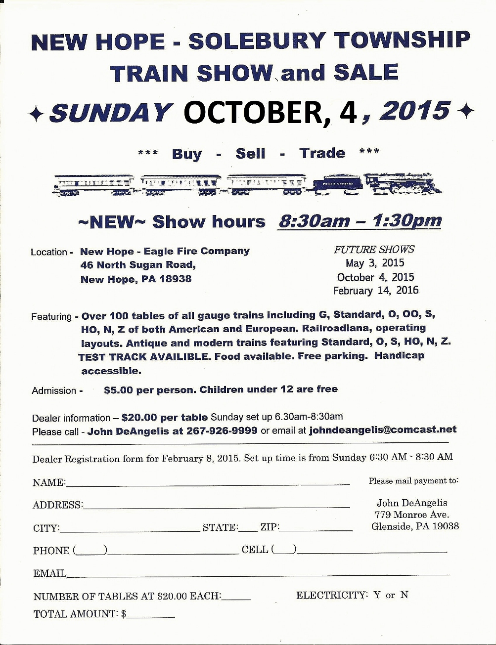 Train show this Sunday October 4 2015. A little updating for this weekends train show in New Hope PA. As always at the fire house. I'll be there. Flyer