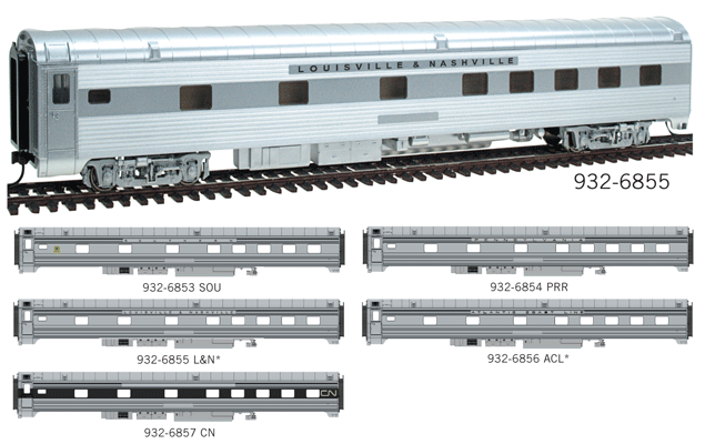 When lightweight cars came to the Pullman fleet in the early 1940s, their smooth sides lent themselves to classy, colorful paint schemes. Corrugated stainless-steel sides, later added to match the look (and acknowledge the competition) of Budd's stainless-steel designs, created a variety of cars that ran on premier passenger trains. Walthers Pullman-Standard passenger cars bring this variety to HO Scale passenger trains with models matching the performance and detailing or our popular Budd passenger cars. Walthers Pullman-Standard cars feature as many as four body styles; smooth or fluted sides, with or without skirting as appropriate for each roadname. They ride on GSC 41-N trucks with diecast sideframes and blackened-metal wheelsets. Other features include flush-fitting windows, full interiors, working diaphragms, magnetic knuckle couplers and car number and name decals. The car bodies have molded-in drill starter points that make installing the supplied wire grab irons easier. All cars, unless noted, have built-in provisions for the Walthers Passenger Car Interior Lighting Kits: DC Version 933-1049, $10.98, and DCC Version 933-1084, $7.98 (both sold separately).