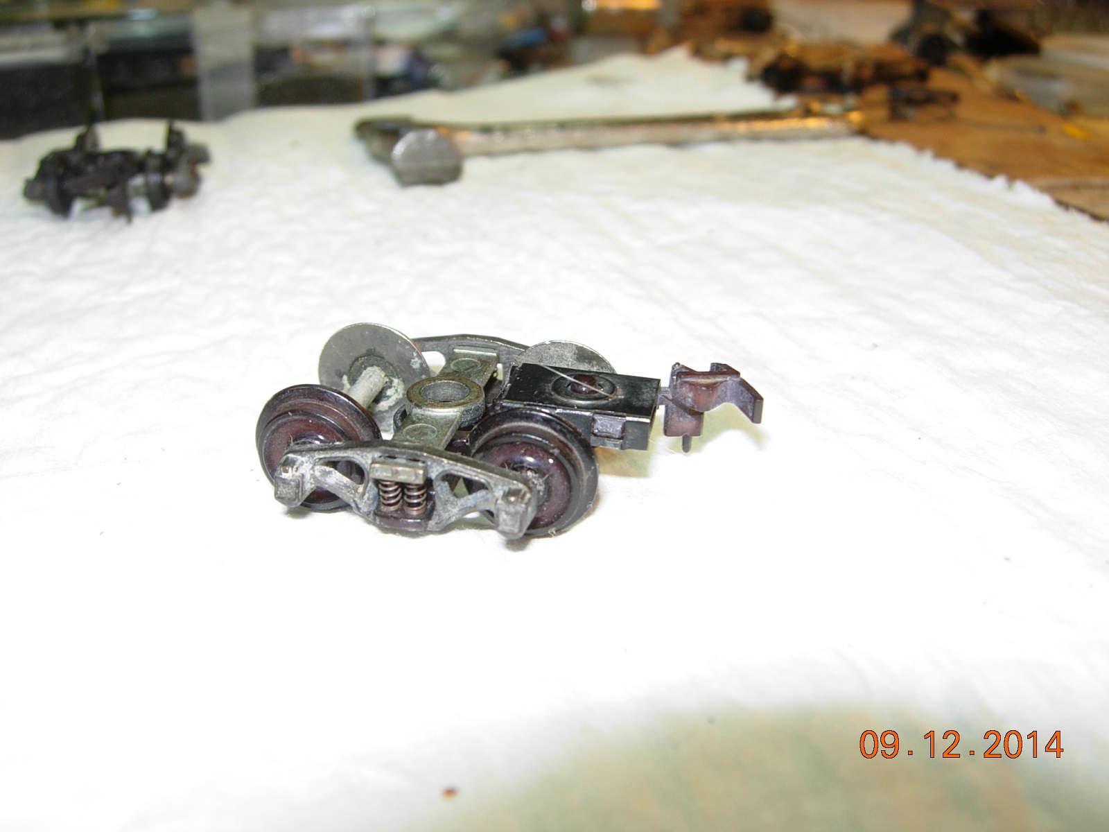 Can anyone tell me who made these? I got a bagful at a train show last year. "Obsolete trucks" they were labelled. They actually roll very well. In the photo, you can see two crossmembers.