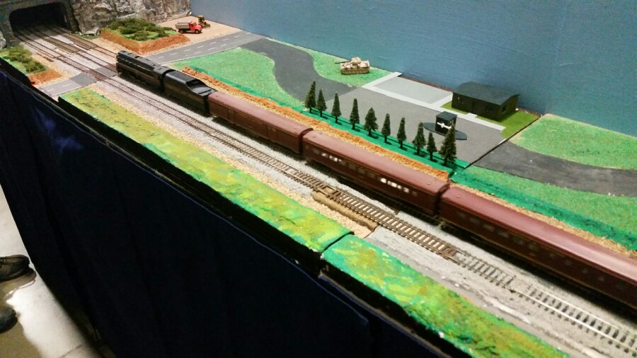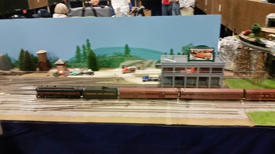 My club put up an HO modular layout at this show, so I went Friday to help set up, and also early Saturday morning. I brought two sets of trains to run, but only managed to run my BLI J series #613, with some newly enhanced Athearn? N&W corrugated side passenger cars to run behind it. I ran it for well over an hour, and it did great.