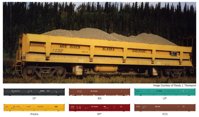 These very distinctive cars are the railroad equivalent of a dump truck. Designed to carry up to 100 tons, they are fitted with large pneumatic cylinders and side doors, and can dump to the left or right of the tracks. While used primarily in work train service for dumping ballast, fill and rip rap, they can also be used in revenue service to carry sand, gravel, cinders, coal, limestone and other loose bulk materials used in industry. This HO Scale model comes fully assembled and includes a complete set of add-on wire grab irons; molded drill starter points on the body simplify installation. Working knuckle couplers and free-rolling trucks with RP-25 metal wheelsets round out each car.
