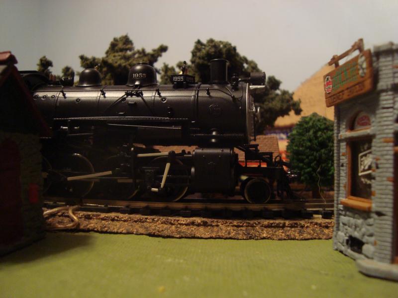 The rerailer/crossing is a AHM product, has a nice cobble stone road surface and if you find one new in the box, has manualy operated crossing gates that come with it. The steamer is a PFM/United brass imported Santa Fe 2-8-0, the most prolific brass engine ever with over 8000 imported. It was professionaly painted and constant lighting installed before I got it. I overhauled the open frame Pittman motor with new magnets, polishing the comuntator and a good strip and relubrication before all of those previous steps were preformed. I tried a can motor that I had on hand to see how well I could make the original motor run. It actual runs better in all aspects other than amp draw, which is just fine as well. At 10 volts pulling a 12 car train of the long Atlas propane tank cars, she draws 1/2 amp, if I hold onto the caboose and let her slip out, she will draw 3/4 amp. The can motor is below 1/2 amp all the time. But the open frame is quieter, has more grunt and the amp draw is well within limits of most decoders if I wanted DCC. There is enough head room once I pull the empty from the Co-op to fit the Connie and 1 forty foot car. The covered loading warehouse/factory receives 1 forty foot box car every couple days. I did email him about the saw mill, never recieved anything reply wise, maybe its going into his spam filter. If someone wants to link him to my forsale ad, please do. Need the sawmill gone. I have a PFM V&T ten wheeler coming to mess with. I may eventualy slide into a wild west era but it needs some work and I want to get rid of the tender mounted motor. Already got plans in my head how I will do this. Mike