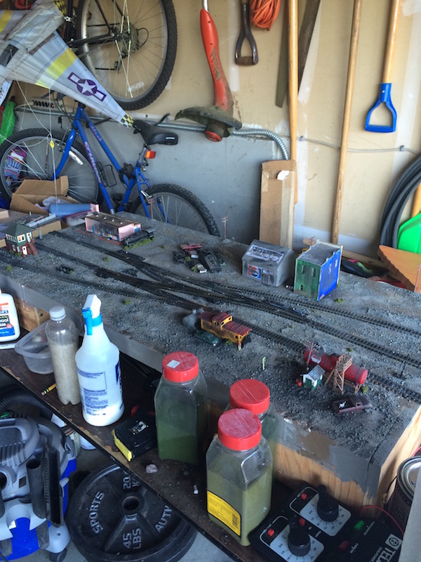 Just added some bushes and weathering to the layout.