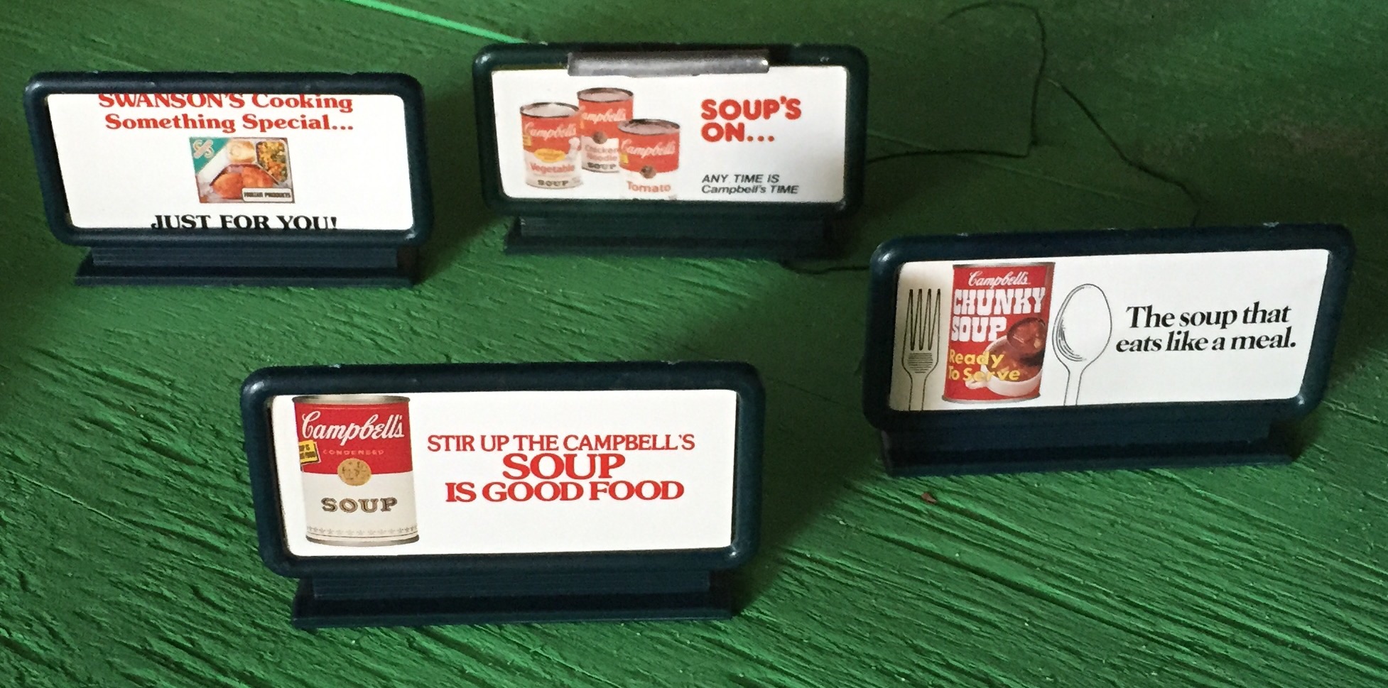 A set of Life's-Like Campbell's soup billboards from their Campbell's train set. Also included is the more common lighted Campbell's billboard from long ago!