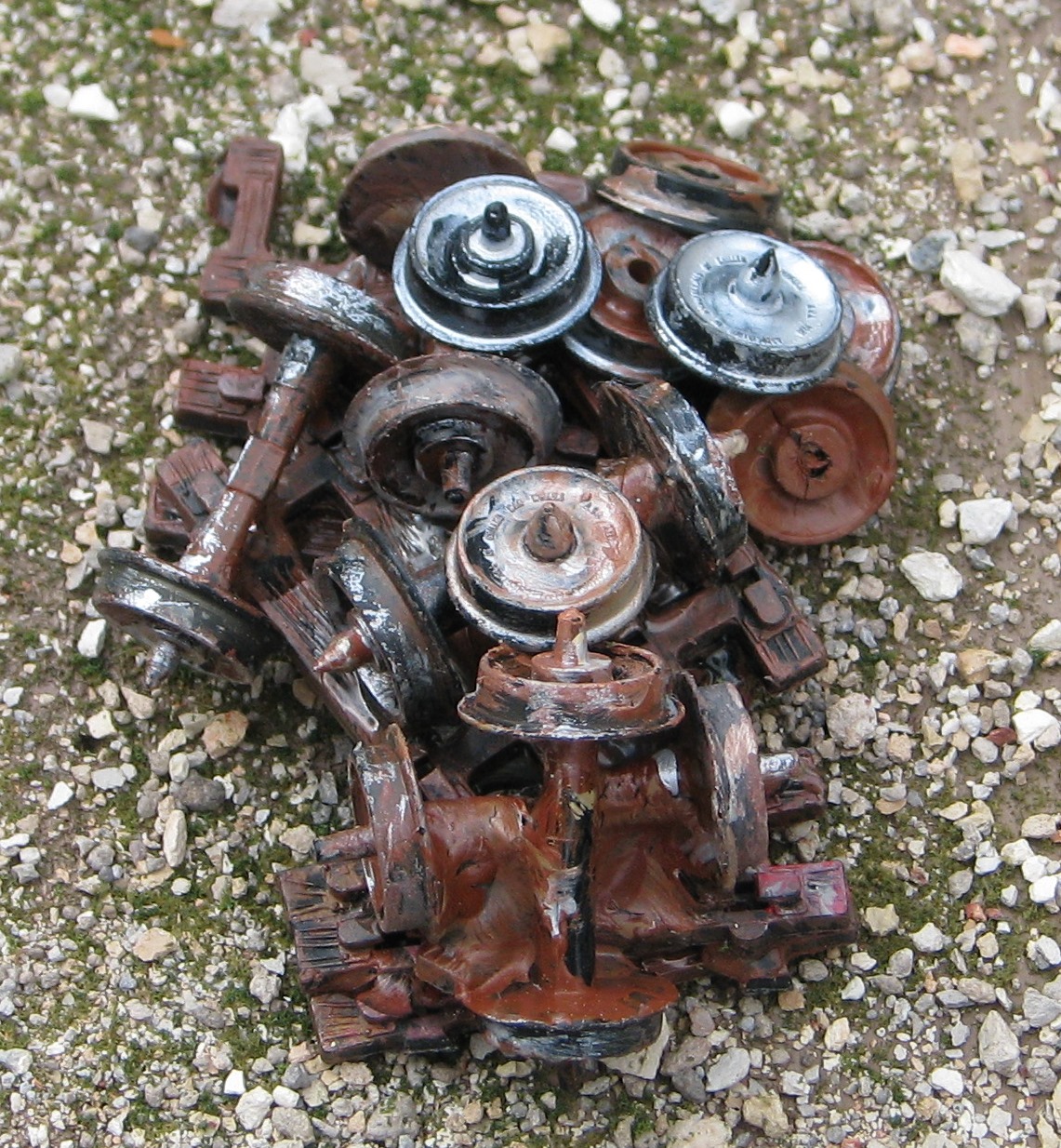 I never have to dig too deep at my house to find JOTW material! I have plenty. This weeks "donation" to this post is gonna be headed out to Nebraska soon ( GIMME! ), it's missing the non-power truck axles and cover. one of my thrift store finds from last week, I'm keeping the BNSF, but Microbusss can have this one. I probably should try to power it up to see if it works ( rummaging....powering up...yay! it works, but squeals ), guess I'll oil the motor before I send it to Ben . Looks to be in nice shape, other than the missing metal axles.