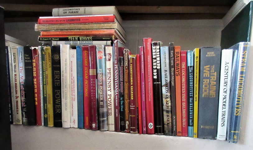 ** The books I am interest in tend to favorite railroads around and at the turn of the century. Pertaining to before and after the year 1900. That is where my modeling has gone to in the last 3 years. My little library reflects this. The author I have the most books by is E.P.Alexander. I have seven." Iron Horse ", 1829-1900. "American Locomotives", 1900-1950. "Down at the Depot", 1831-1920. "On The Main Line", PRR in 19th Century. "Civil War Railroads and Models". "Collectors Book of locomotives". "The Pennsylvania Railroad" complete the seven. Alexander to me favored one of my favorite railroads, the Pennsylvania Railroad. Other PRR books I have are, "I Remember the Pennsy" by Don Wood. "Pennsy Steam and Semaphores", by Fred Westing. " History of the PRR", by Timothy Jacobs. "PRR Hudson the Horseshoe" , William D. Volkmer. "The PRR 1940-1950", By Don Ball Jr..