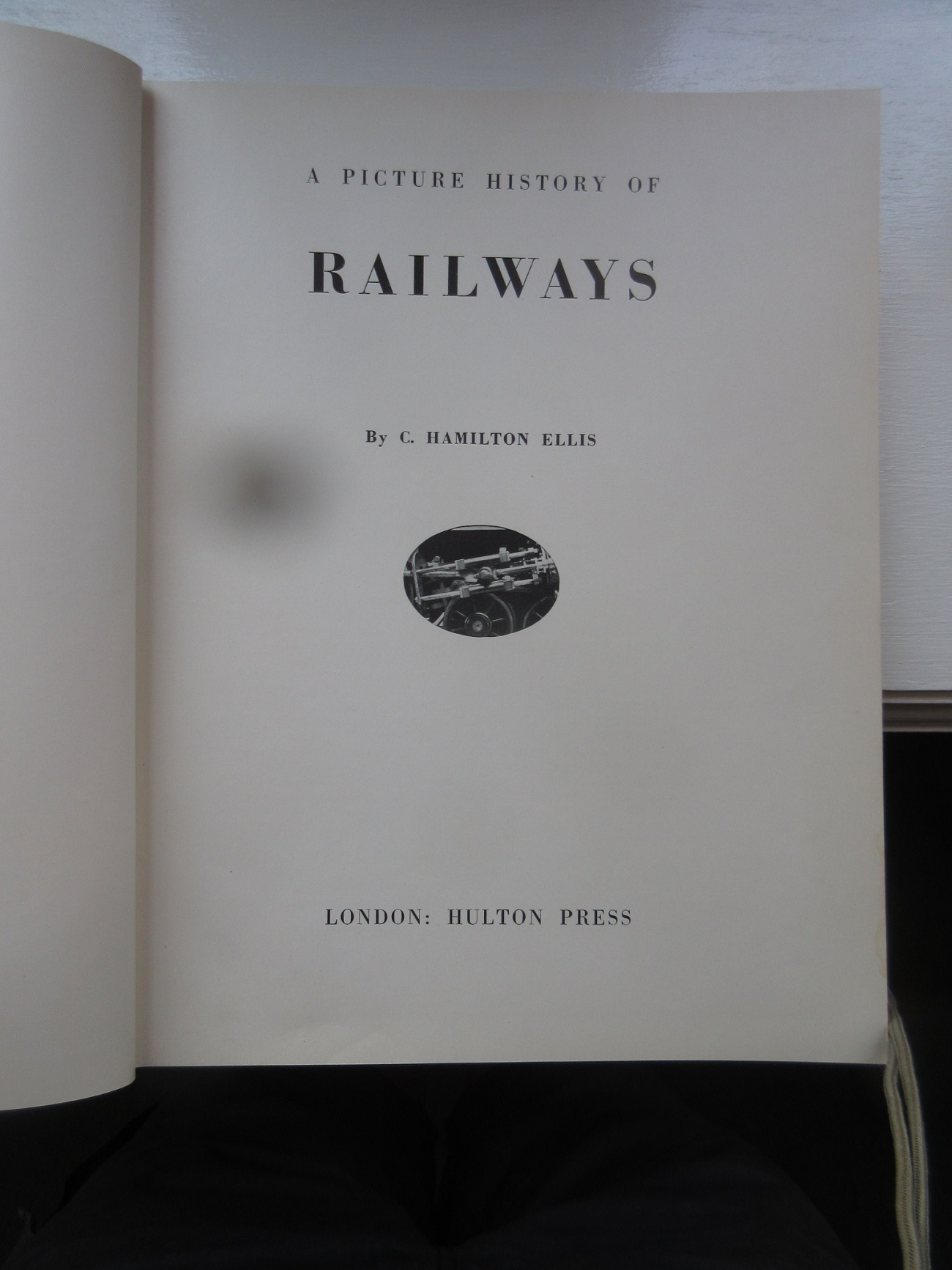 I recently got a Railroad book " RAILWAYS ", by C. Hamilton Ellis. It is mostly English railways with some of everyone else thrown in. Lots of old lithographs and old photos here. An old photo within is of an 1860-70 Rogers 2-4-0. The cover  The front page.