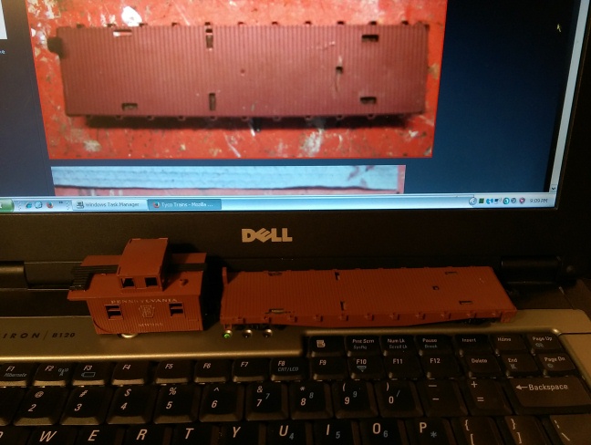 Also, IIRC the PRR work caboose was brown/oxide red, the derrick car was the correct light grey for a PRR MOW car. No need to check the arrangement of slots if you remember that.