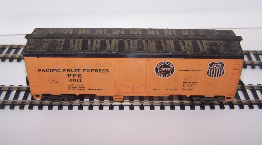 I would guess Revell: http://www.ebay.com/itm/6-1950-039-s-Revell-H-O-Refrigerator-Train-Cars-PFE-4011-Mint-in-Boxes-/151566791763?nma=true&si=F7ae%252BWxyalI8nRbYRJynZfaBEYM%253D&orig_cvip=true&rt=nc&_trksid=p2047675.l2557