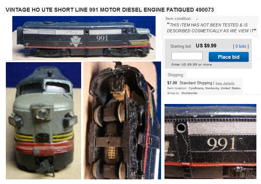 Well the loco itself is pretty well wacked, but the Ute Short line was a layout that was built by Earl Cochran and Model Railroader ran an article on it in 1949. I remember it well, because it was a really cool layout with mountains and bridges and looked really cool, but it was only a 5 by 10 layout that looked much bigger. I will guess the loco is a historical collectors item. BTW, I believe it is a Lindsay FA1? Regards, Vic B.