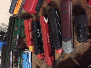 | I see a lot of $3-$5 cars, a lot of $10-$25 engines, some $3-$15 transformers, some $5-$15 buildings, and the track as a lot there's probably $20 there.