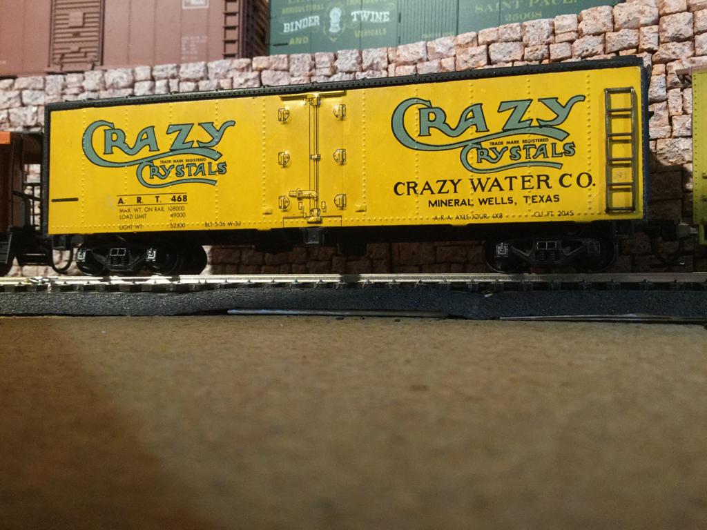 quote:Mantua metal side Crazy Water reefer. Impulse item that I "had" to have when I saw the reference to Mineral Wells, TX which is about 60 miles from where I am.