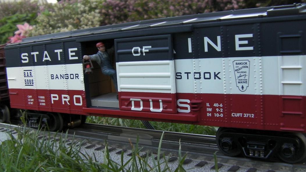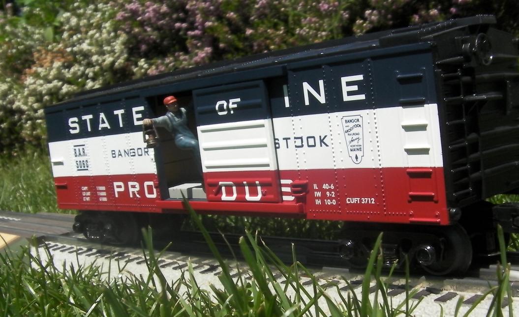 | Nice photos. This one an MTH State of Maine action car.