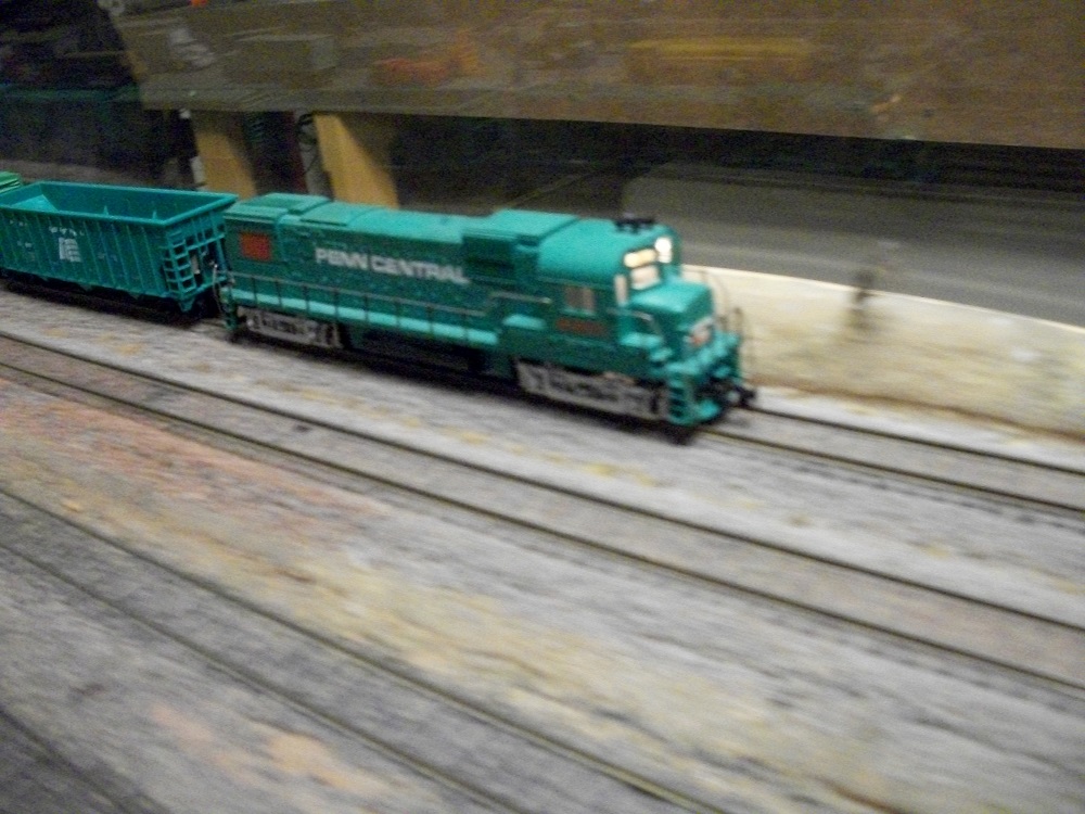 One of my CNJ Alco RS3's rides the turntable at Frankford roundhouse. Looking for a inside track for service.