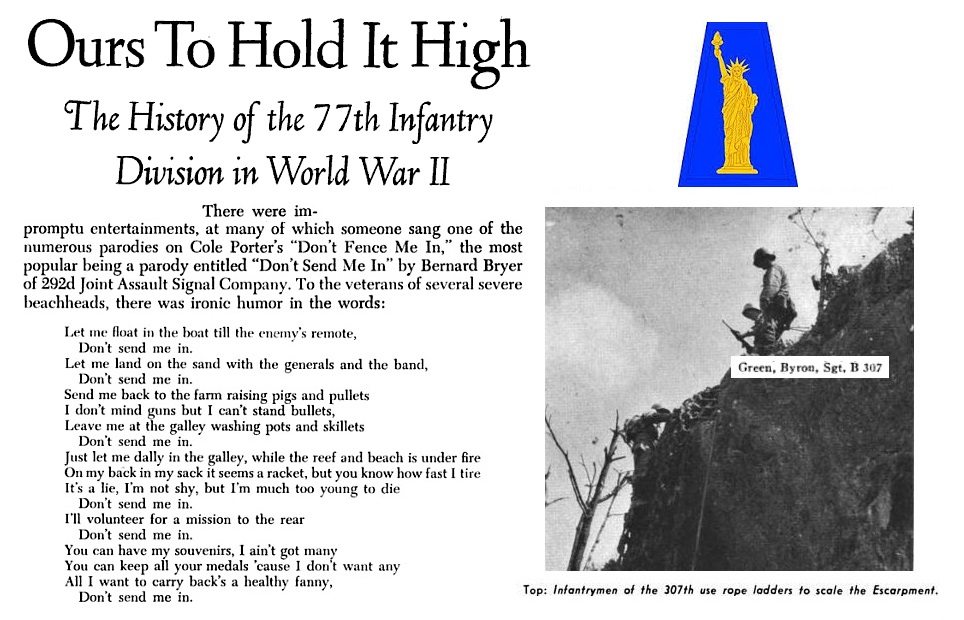https://books.google.com/books?id=EokgAAAAMAAJ&pg=PA492&lpg=P br / A492&dq=byron green 77th division wwii&source=bl&ots=ERgP9CEDWh&sig=7wpJm0NpwGS-XtjcYgO6xtm3xgs&hl=en&sa=X&ei=napfVd7FFcHxggSomYHgCg&ved=0CCQQ6AEwAQ#v=onepage&q=byron%20green%2077th%20division%20wwii&f=false