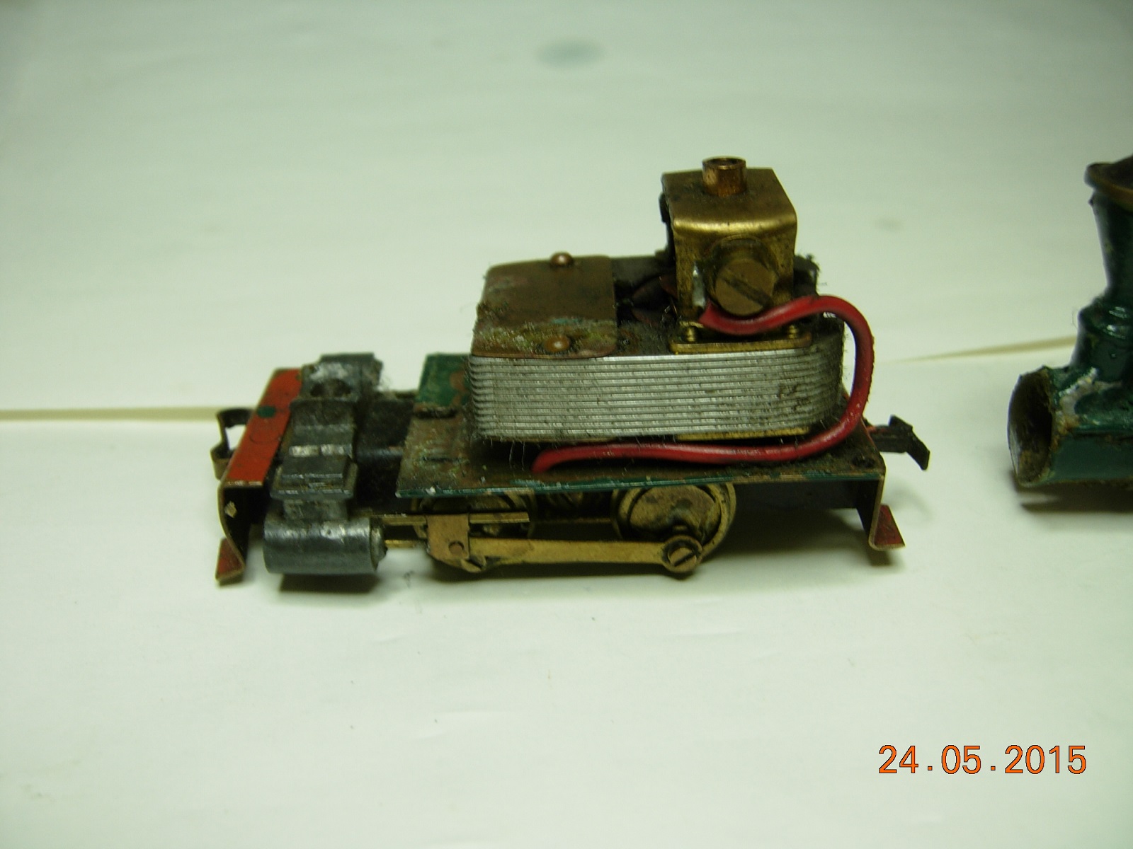 I've since stripped the paint from the little bugger. Evidently, it took a dive to the floor at some time. The stack took the main impact, then the cab roof hit. So what appears to be a modification is the stack base having been punched into the boiler. I'll try to fix it. Shiny pictures to follow.