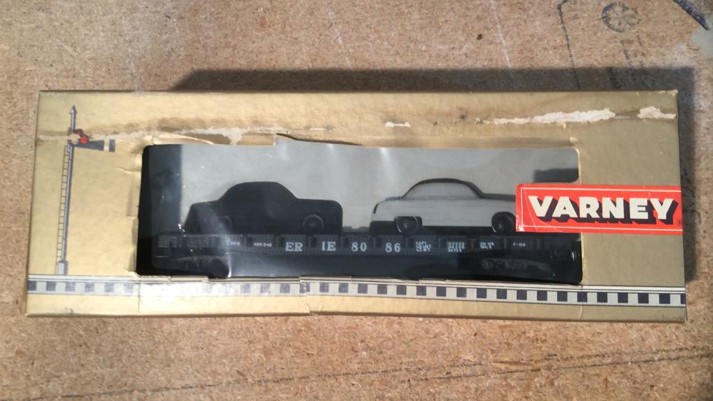 Varney Erie flat car with 2 autos