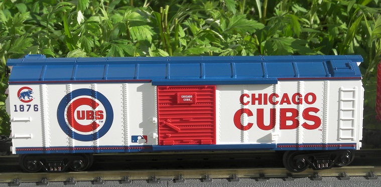 | Colorful cars shown so far this week. This one is a Chicago Cubs MTH freight car.