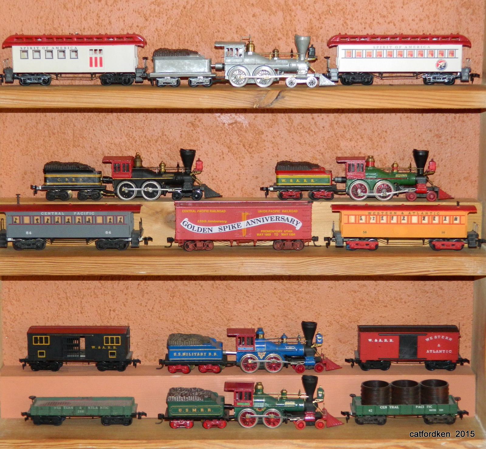 Never seen so many Generals in one place. Is that Blue USMRR one factory paint or custom? That unpainted one, never knew they came in all metal. An impressive collection.
