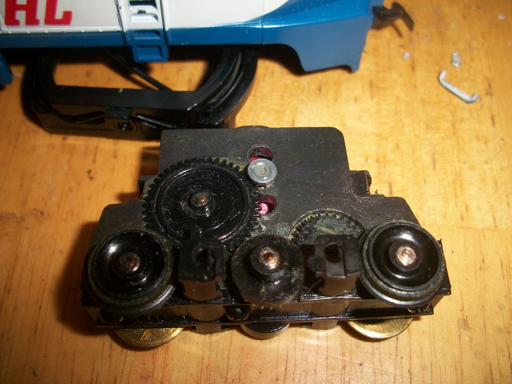The more fun answer, however, is to replace the motor. The procedure is basically this: find a small, flat can motor...CD players, CD/DVD ROM drives, and Playstations ( I hear they are the best fit) all have them. Take the armature and the old magnets out of the locomotive's power truck, and "reshape" it with a dremel tool...or whatever... until the can motor fits in where the armature sat. Glue it in place. Wire it up and go.