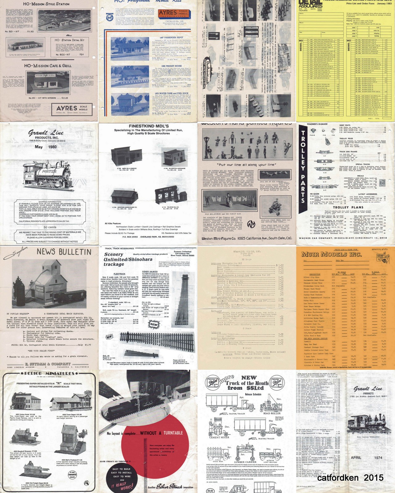 An awesome pile of info, Ken. It made my little score even smaller. Seems hardly worth mentioning now. But I will anyway. In no particular order... Con-Cor 1987 Marklin 1979 Peco N 1976 Fleischmann 1972 " " 1973 Preiser 1967 Faller ? Williams O 2008 Plastruct #3 1985 Peco 2000 Life-Like Model Landscaping (pre-dates Zip Code) Marklin HO 1996 A.J.Reeves Model Engineers Catalogue 22nd. edition Kibri HO & N 1967/8 Fleischmann HO pamphlet Dutch 1965 Marklin HO Dutch 1960's Revell 1956 Faller Dutch undated