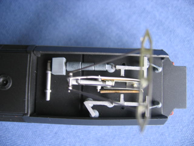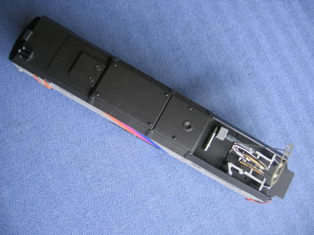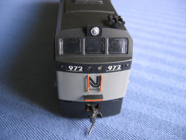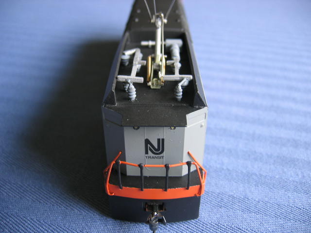 This was an American GK undecorated engine. The small detail parts like the insulators and other electrical detail parts were missing. I made or cannibalized them from a damaged Bachmann E60CP #951 and a few left over parts from the American GK E60CP's I did previously. I re-did this engine 3 times. The fist two attempts were in a silver/black paint scheme. The 3m painters tape and other painters tape kept taking the silver paint with it. So for the third try I used the left over grey paint from my NJT INC GG1.
