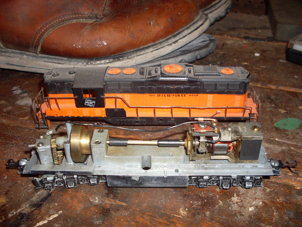 I got this off ebay a few years back in a "junk" lot. It appears to be an Athearn GP7/9 shell, but the motor is different. It appears to be made by Pittman. I use to run it occasionally, and it seemed to run well but I remember it seemed to have trouble on curves, although I had nothing less than 18 radius.