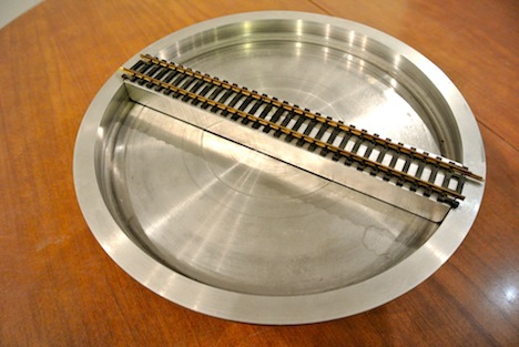 quote:This one simply defies description. Obviously an HO turntable but also without a doubt a one of a kind. This thing is made from solid aluminum billet and has been fully machined. It is so overbuilt it is just crazy! I found it at a swap meet and did manage to talk the seller down. It was simply to weird to pass up!