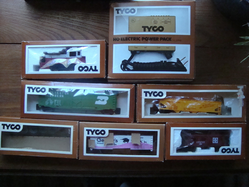 On my way home from work, there is a house with a large dumpster in the driveway. Looks to be a family disposing of an estate prior to selling the house. They have a small table down by the road that they have been putting free stuff on. Yesterday it was mostly books, nothing really good. Today was another story! I am on my Honda Rebel motorcycle, and what do I see, a whole bunch of brown Tyco boxes. I did a quick U turn and road right up to the table. I made sure it was free, thanked them and stuff it all in my saddle bags!!!. See the pic to see what I got. Looks to have been hardly ever run. No track, not that I need anymore brass sectional track. I have a whole bunch now! [URL=http://s83.photobucket.com/user/cadetpwr/media/DSC07562_zps8noyrmbr.jpg.html] [/URL]
