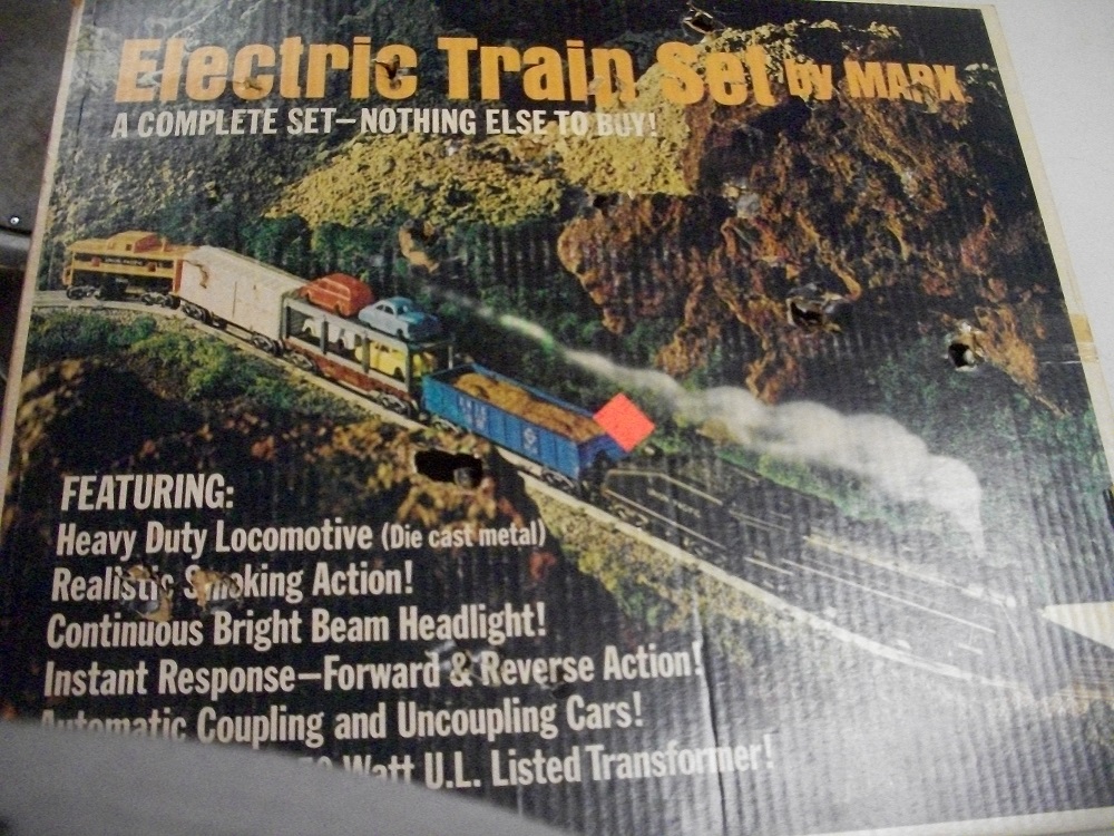 Or should I just trash it. I hear some collectors buy up old boxes to complete the set. Should I throw it on ebay with some outrageous price or put it back in the trash?? Found it at Club, if worth more than a nickel, I will donate proceeds to El Paso Model Rail Club. It has holes in the cover, no bottom piece, but retains Styrofoam holder.