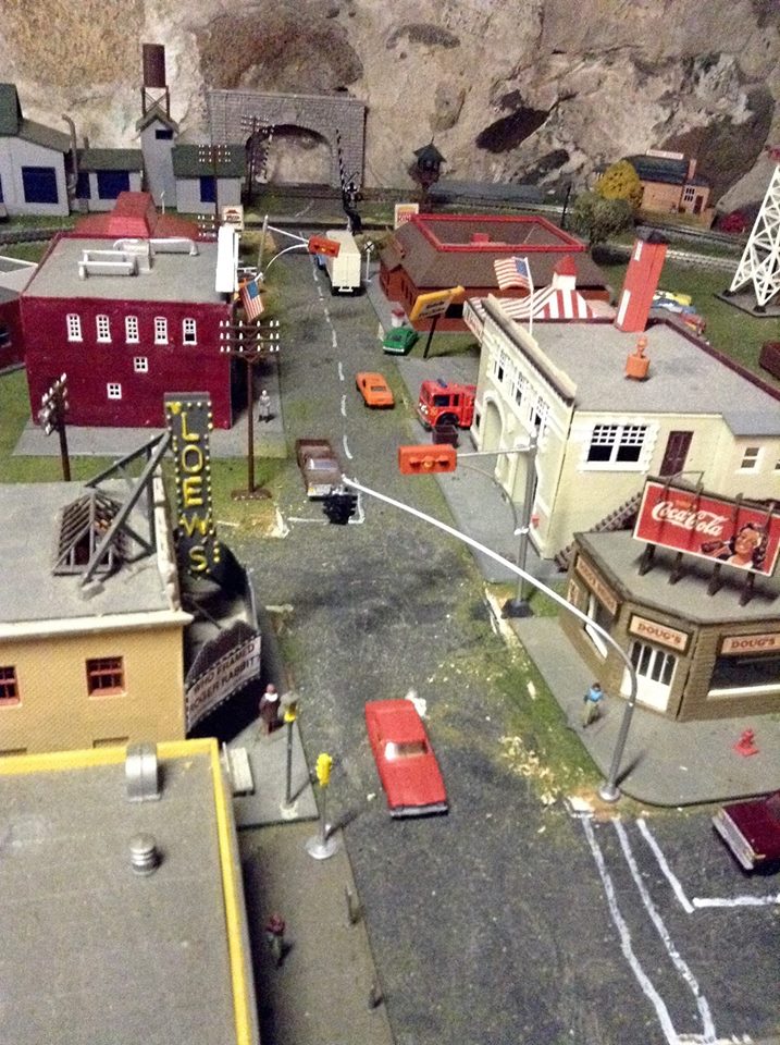Here it is placed on the layout. I also re-positioned the TYCO traffic lights to use as fire station signals!