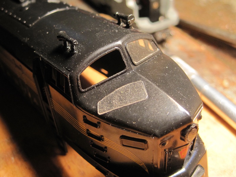 The windshield was trimmed and filed to fit, then duplicated for the other side: