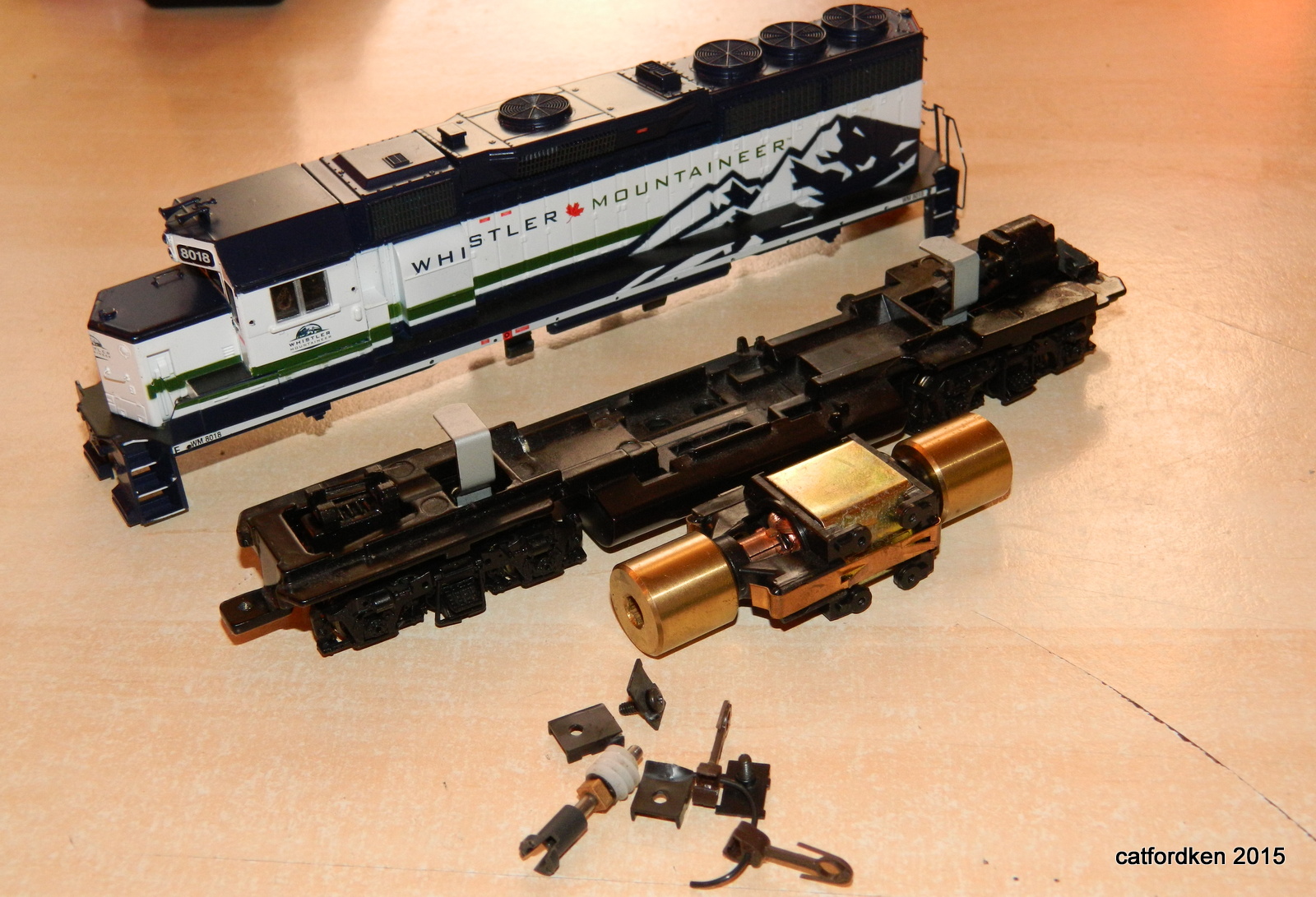 That's a newer version of the good ol' Athearn Blue Box locomotives. Very good, reliable runners, easy to disassemble, reassemble, repair, and maintain. Here's a video showing the disassembly and reassembly process for these engines (the version in the video is a little older version with a few differences, but very similar): Basic Cleaning and Lubrication of an ATHEARN Blue…: http://youtu.be/xgAWjBsyWrE From the pictures, it looks like you are missing some pieces. However, they are plentiful and easy to find.