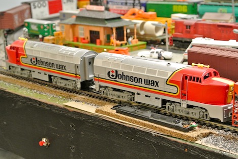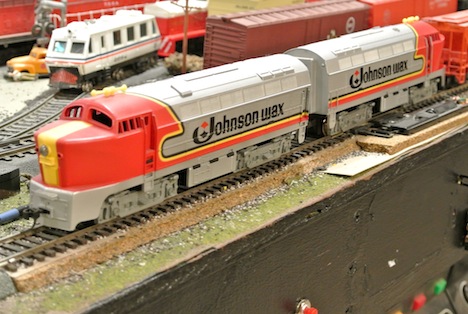 Got my Johnson Wax Shark from Chops all cleaned up and running. Needed a shot of TV tuner cleaner, two new traction tires , replaced a broken plastic flanged wheel, two new knuckle couplers and a quick scrubbing and touch up with a silver sharpie. Looking fresh and running good! Now I have that JW AA set I was after