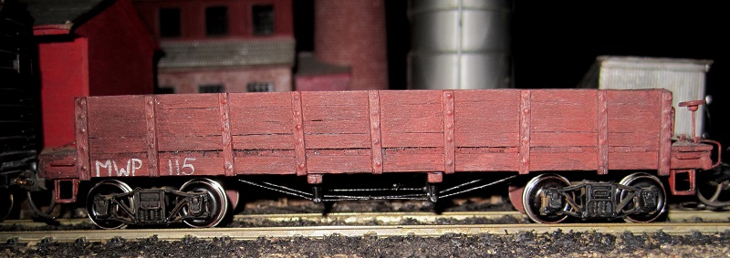 | Those MDC Roundhouse short flat cars with the wooden sides are pretty nicely put together. I dig what you did with yours Don. They look quite a bit like some of the earlier cars that were used in this neighborhood to haul ore from Cripple Creek to the mills in Colorado Springs.