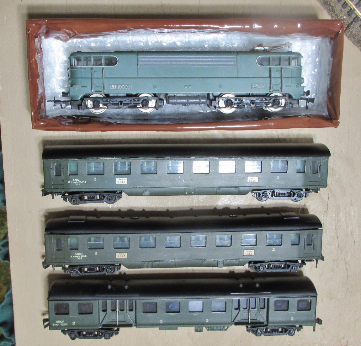 *Ken , how are you and yours. I hope all is well. * Now you can actually get one. I thought I would get a pair of similar ones because the originals weren't possible to get. With trains like those, you would not think it possible to get them here, until one day they are here. I found the loco 2 weeks ago. I got it for 15 or 20 bucks. I really don't remember what it cost at the time. Missing a pantograph and the fact that the one there is on backwards doesn't mean anything to me. Even the three cars I found a few months ago, being beat up and one missing a roof, still because they were $10 for the three, I got them.