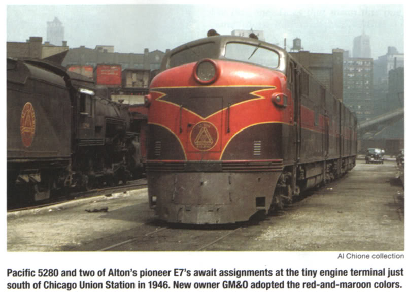 I guess my favorite scheme is Gulf, Mobile & Ohio's maroon and red used on its cab units. The scheme starts out on the Alton...