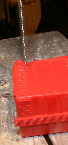 Then using hobby knives and files, smooth down the sides and ends of the rebuild's shell to prepare it to receive the Accurail roof...