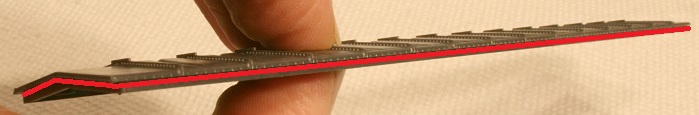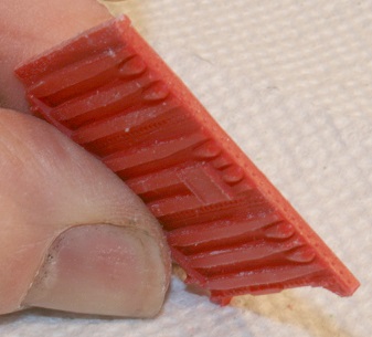 At this point it is a good time to modify the Accurail roof. The first step is to remove the "rim" on the underside of the shell which in these pictures are highlighted in red....