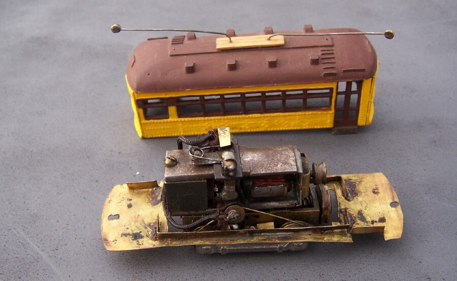 Getting some traction first, I picked this up at a train show on the 9th, last purchase before they kicked everyone out. $20. I believe it's a Walthers trolly, needs a new belt, clean-up, and servicing. I just bought two others like this, Walthers trolleys, off Ebay over the last couple months. Didn't know they made them until recently. Anyway, will be fun to get this one running again.