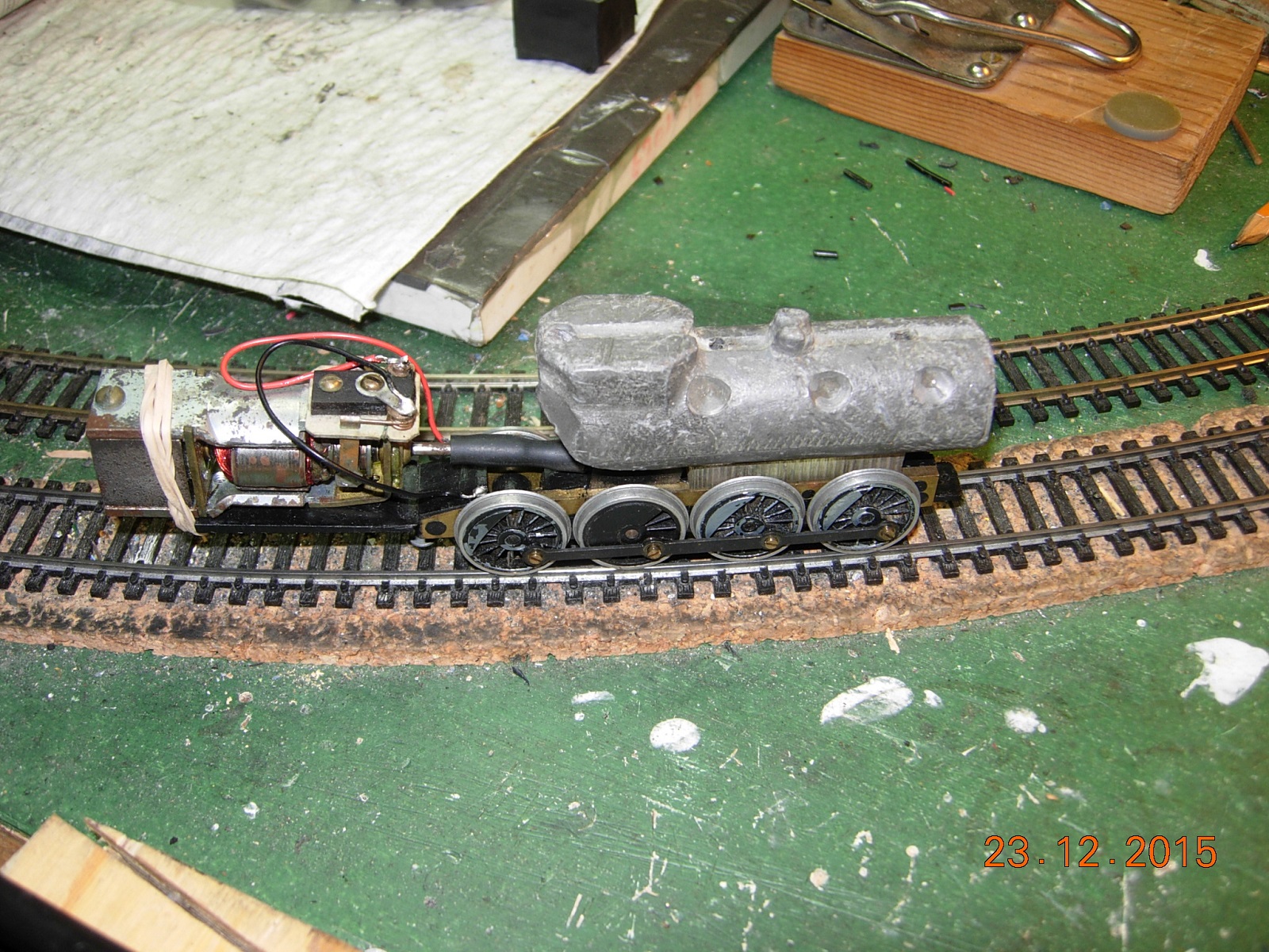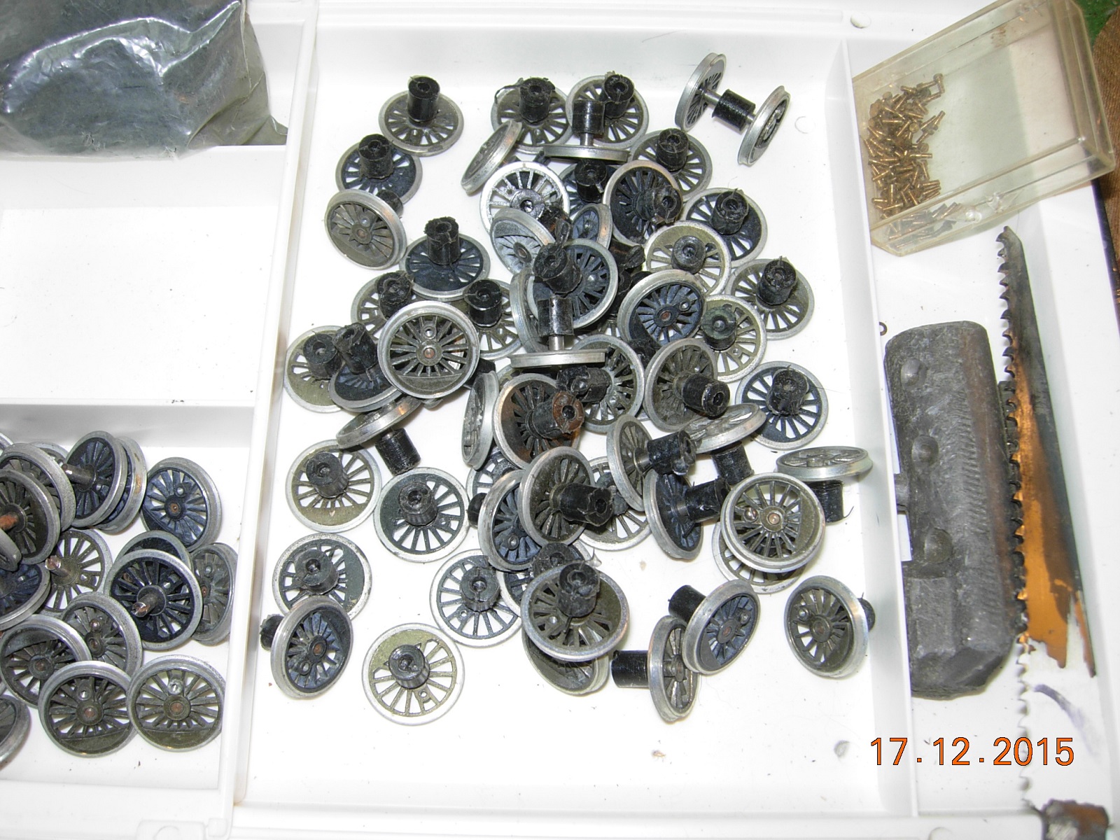 I brought all of the boxed parts home, so I could find out how many complete units there are. The limitations were: Chassis with worm and shaft half axle spacers ( a la Athearn ) PS The axles, with the exception of the geared one, are NOT quartered. The rest of the parts were plentiful. I also came across the original weight used for testing completed kits, prior to being shipped. A bit closer to figuring out what to sell them for. Evan