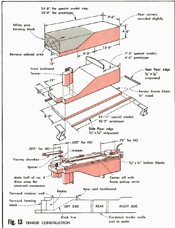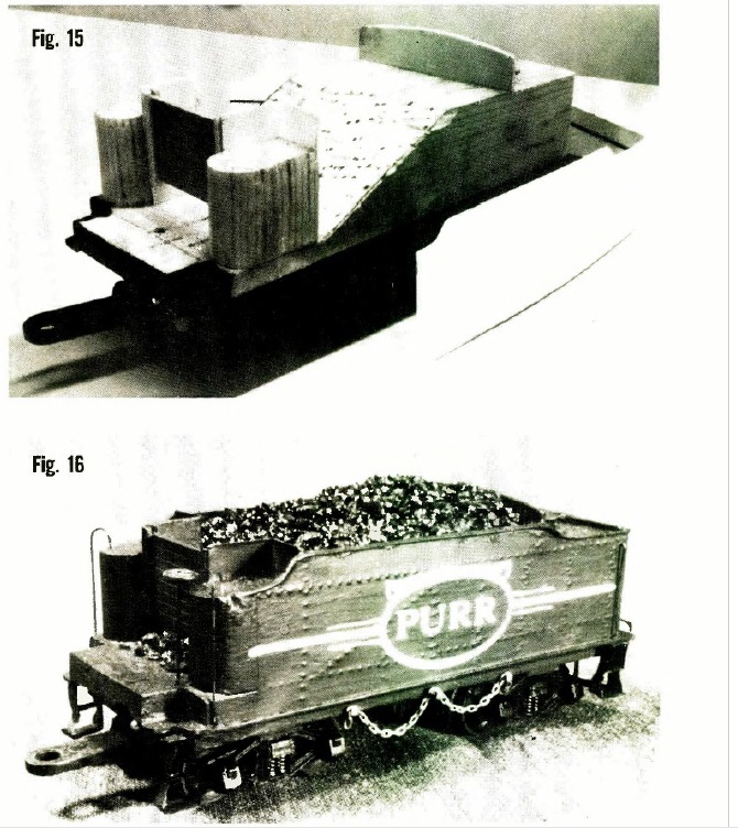 May 1972: building a loco from wood and card. Has a good illustration of how to do the tender by wrapping a card skin around a wooden base, and using wooden bulkheads to form the rounded ends of the water tank. You're using plastic, but similar ideas could be used.