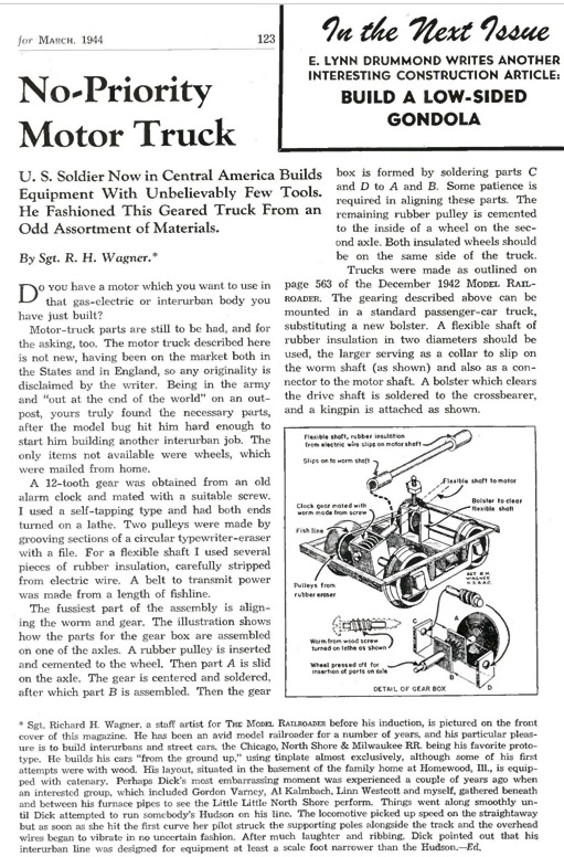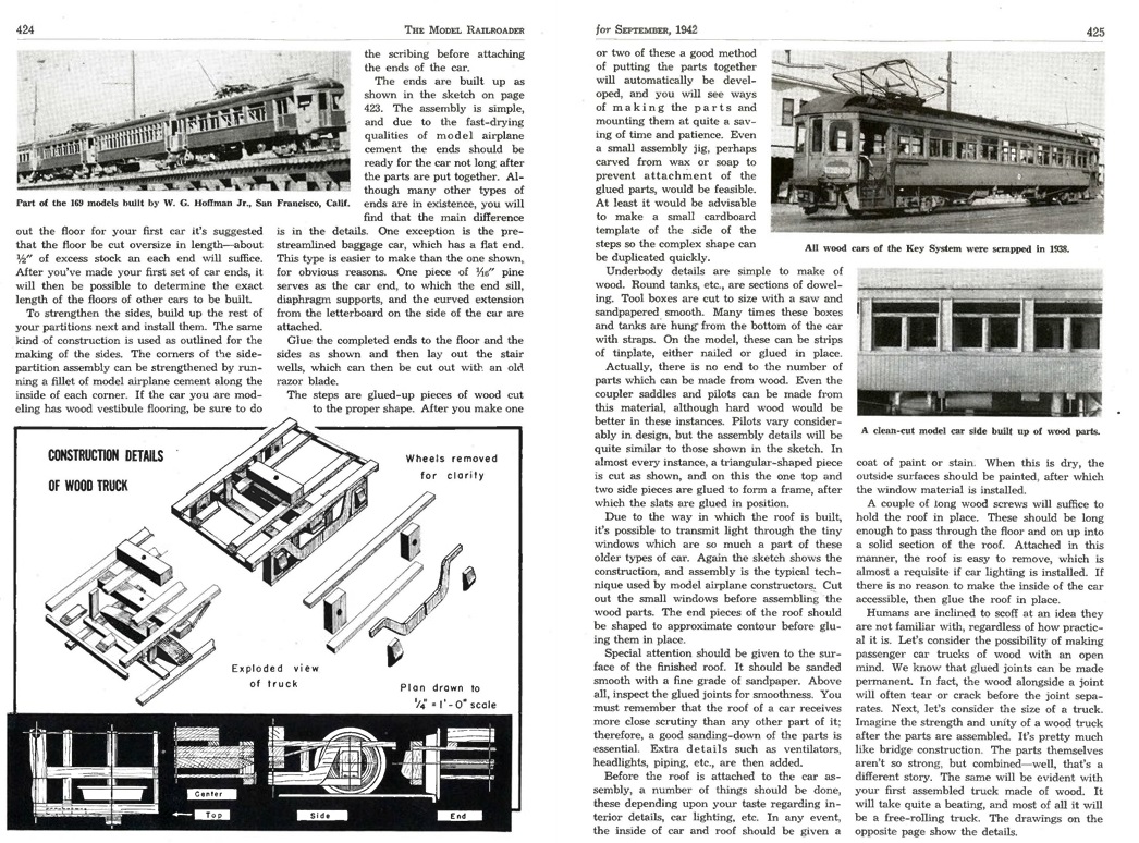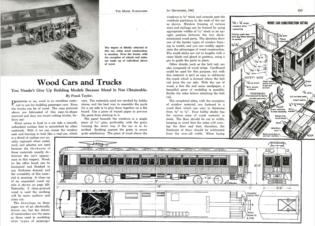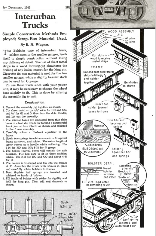 And here in Sept 1942 is an article about making passenger and interurban cars, including their trucks, out of a non-strategic material: wood! The truck frames are completely built-up of wood strip. The structure used could be applied to plastic as well.